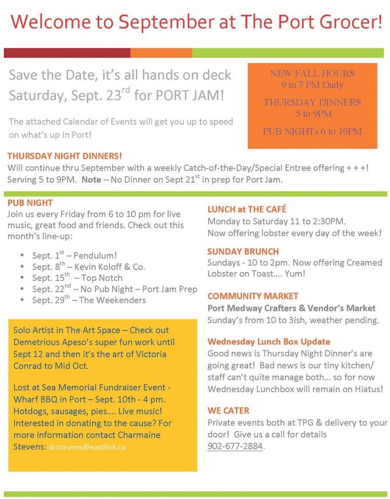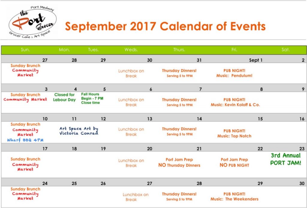 Events The Port Grocer Calendar of Events – September/2017 01-Sep-2017 Markus J. Heinis click picture to enlarge … click picture to enlarge …
