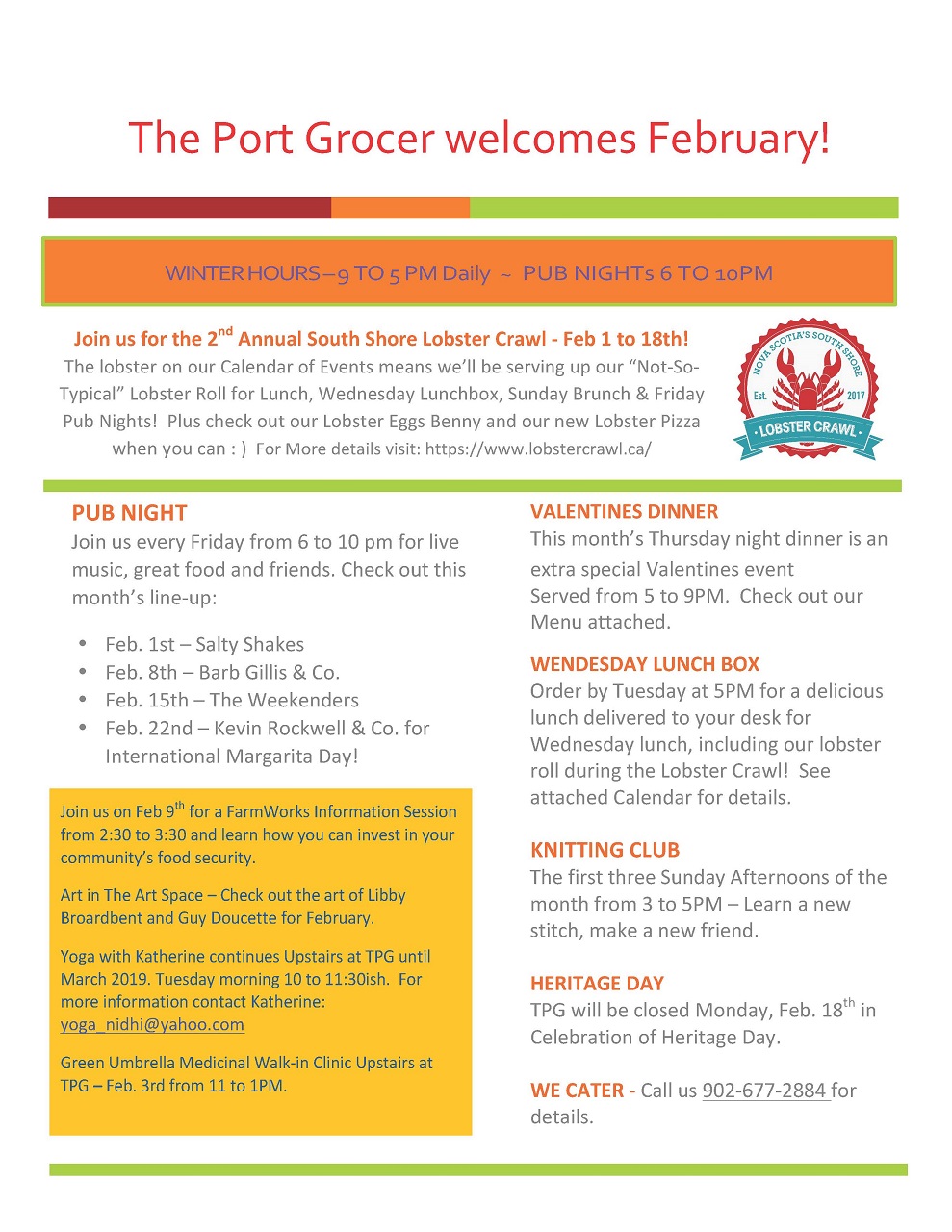 2019-02 TPG calendar of events (2) 31-Jan-2019 989 × 1280 The Port Grocer Calendar of Events – February/2019