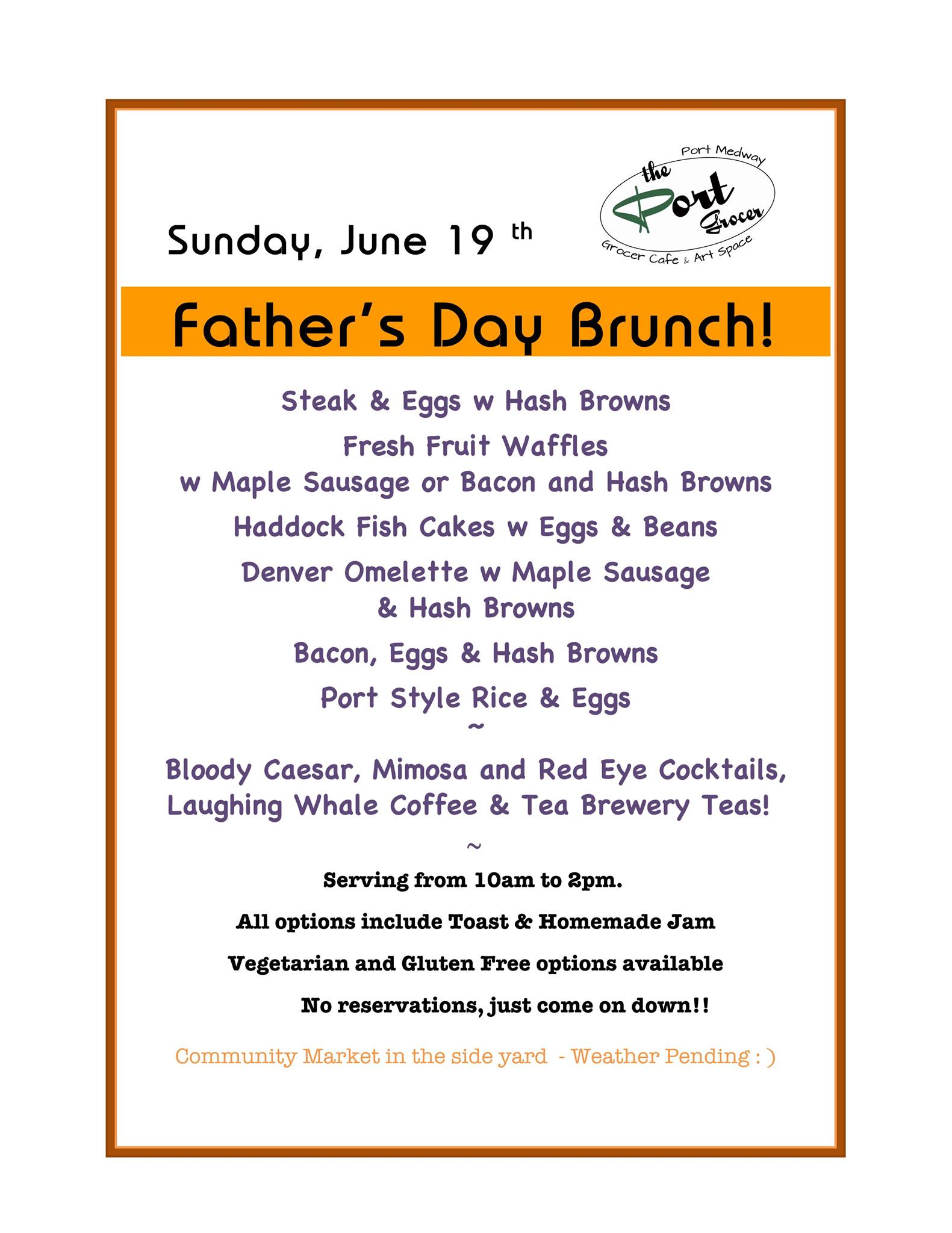 Events Father’s Day Brunch @ The Port Grocer 19Jun2016 Port MedwayFrom 10am to 2pmThe Port Grocer1615 Port Medway Rd, Port Medway, NSThe Port GrocerSunday, 19-Jun-2016 / 10am to 2pm