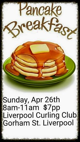Calendar Pancake Breakfast 26Apr2015 LiverpoolFrom 8am to 11amLiverpool Curling Club108, Gorham St, Liverpool, NS$7.--