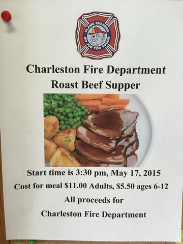 Events Roast Beef Supper 17May2015 CharlestonFrom 3:30pmCharleston Fire Hall807 Medway River Rd, Charleston, NSAdults: $11.--Children 5-12: $5.50--