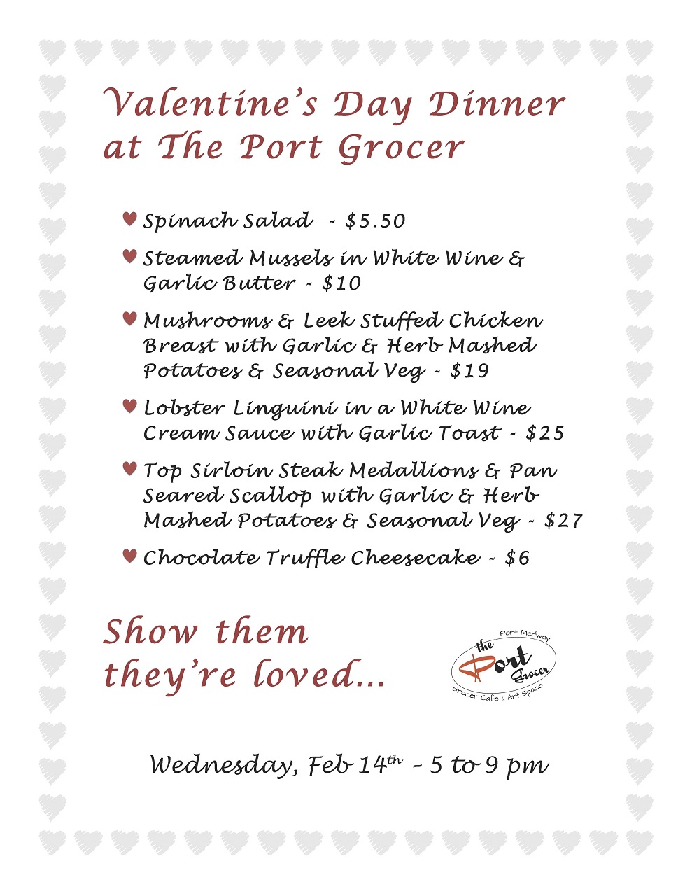 20180214 Valentines Day Dinner, Port Medway 01-Feb-2018 989 × 1280 Valentine Dinner @ The Port Grocer – 14-Feb-2018