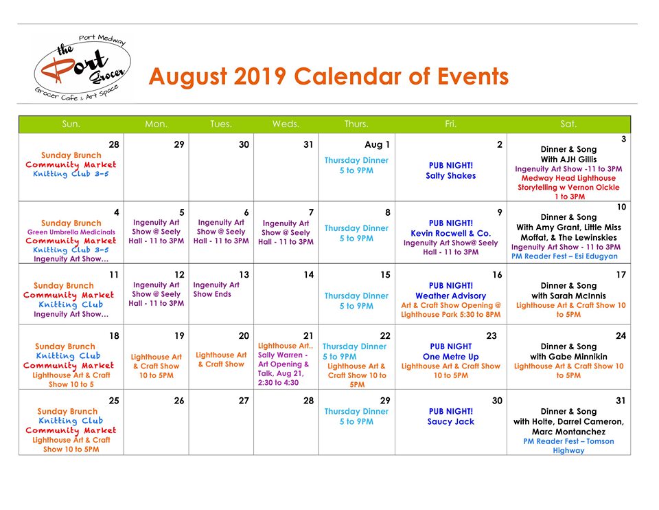 click picture to enlarge … Continue reading The Port Grocer Calendar of Events – August/2019