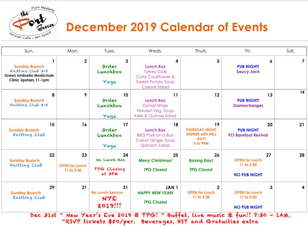 click picture to enlarge … Continue reading The Port Grocer Calendar of Events – December/2019
