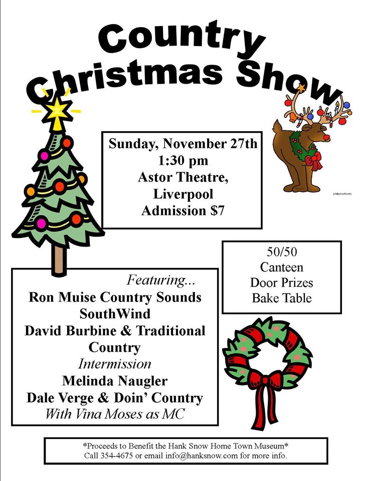 Brought to you by the Friends of Hank Snow Society the Astor Theatre in Liverpool holds the 2015 Country Christmas Show on Sunday, 15-Nov-2015 at 1:30pm featuring: