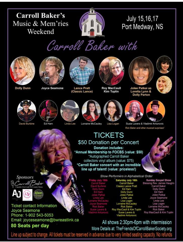 Carroll Baker’s Music & Mem’ries Weekend – Port Medway, 15 to 17-Jul-2022